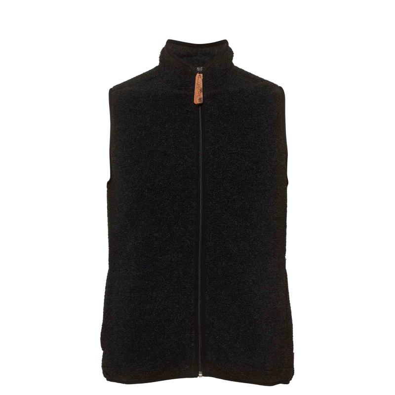 ReBorn Wool Terry Vest er en vest i ullfrotté med små løkker på utsiden. Den har høy krage, dype lommer på sidene og elastiske kantbånd for optimal komfort og passform. Den har en fleece-lignende innside med børstet ull som isolerer godt, og ullen er resirkulert fra overskuddsmateriale fra vår egen fabrikk i Estland. Bruker du vesten som mellomlag vil konstruksjonen på utsiden bidra til luftdannelser mellom lagene, som igjen isolerer godt. Vi har sett på de mest bærekraftige løsningene og logo og zip puller er laget av fiskeskinn. Dette er den ultimate vesten til både friluftsliv og til hverdags.