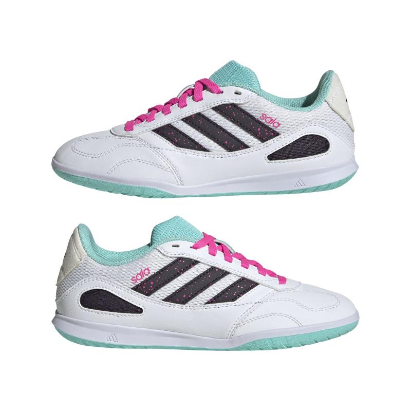 Få hver ballkontakt til å telle på flate innendørsbaner, i disse adidas Super Sala Competition 3-fotballskoene for juniorer. Den myke overdelen av syntetisk skinn og vattert pløse i mesh holder deg komfortabel mens du styrer spillet. På undersiden finner du en yttersåle i gummi som ikke sverter – nettopp plattformen du trenger for å endre retning på et øyeblikk.