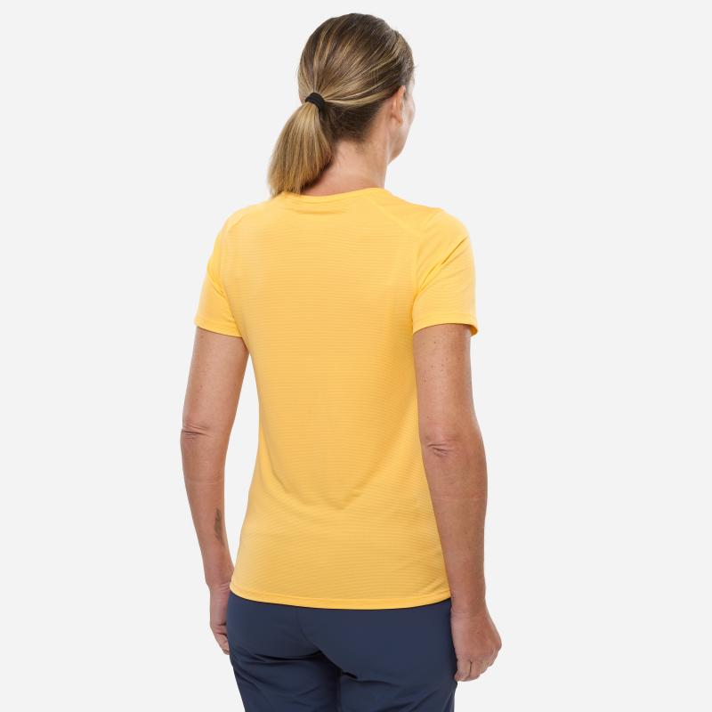 Denne t-skjorten for damer er en komfortabel følgesvenn selv på de lengste turene. Det lette, pustende materialet med struktur transporterer fukt effektivt slik at plagget holder seg tørt.