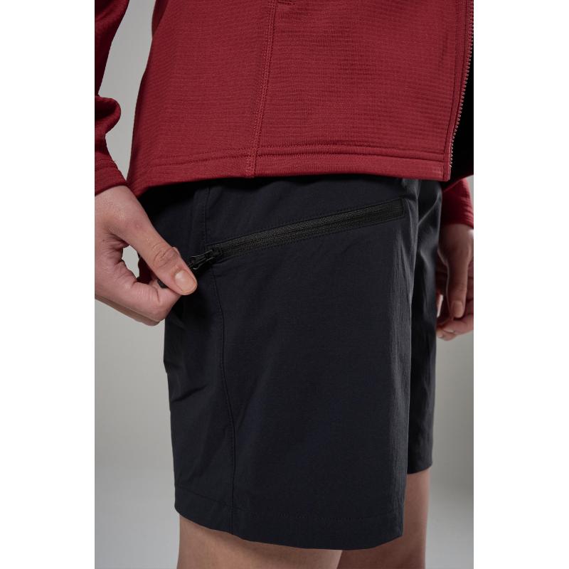 Materiale: GRANITE Flex – resirkulert nylon i dobbeltvevd softshell med svært god slitestyrke, fireveis stretch og solid formstabilitet. Behandlet med fluorkarbonfri impregnering. Shortsen er konstruert med lavprofil-design i livet som er kompatibelt med både klatresele og ryggsekk. Forlenget og høyere bak for bedre beskyttelse, og formsydd og dynamisk passform gir bevegelsesfrihet og komfort. Forbedrede håndlommer med glidelåser i resirkulert materiale er nå mer kompatible med klatresele. En oppdatert glidelåslomme på låret er strategisk plassert for enkel tilgang ved bruk av sele og ryggsekk. Integrert webbingbelte med oppdatert metallspenne gir lavprofilert komfort i livet. Gylfen har glidelås i resirkulert materiale med lavprofil lukking. Baklomme med glidelås i resirkulert materiale for sikker oppbevaring. Plagget er bygget på den nye Mountain Fit-passformen med ergonomisk utforming, som gir en tettsittende konstruksjon optimalisert for dynamisk bevegelse og høy ytelse.