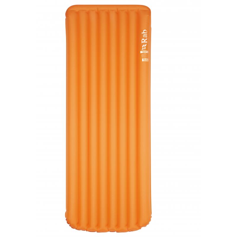 R-Value: 7.3Thickness: 8cmOversized outer chambers help keep you centralised on the matLightweight construction uses air and insulation for superb warmth-to-weight ratio and minimal pack-sizeHybrid rectangular shape allows various comfortable sleeping positionsLow profile two-way valve for easy inflation and deflationPump sack included for rapid and hygienic inflationRoll-away stuff sack with repair kit included