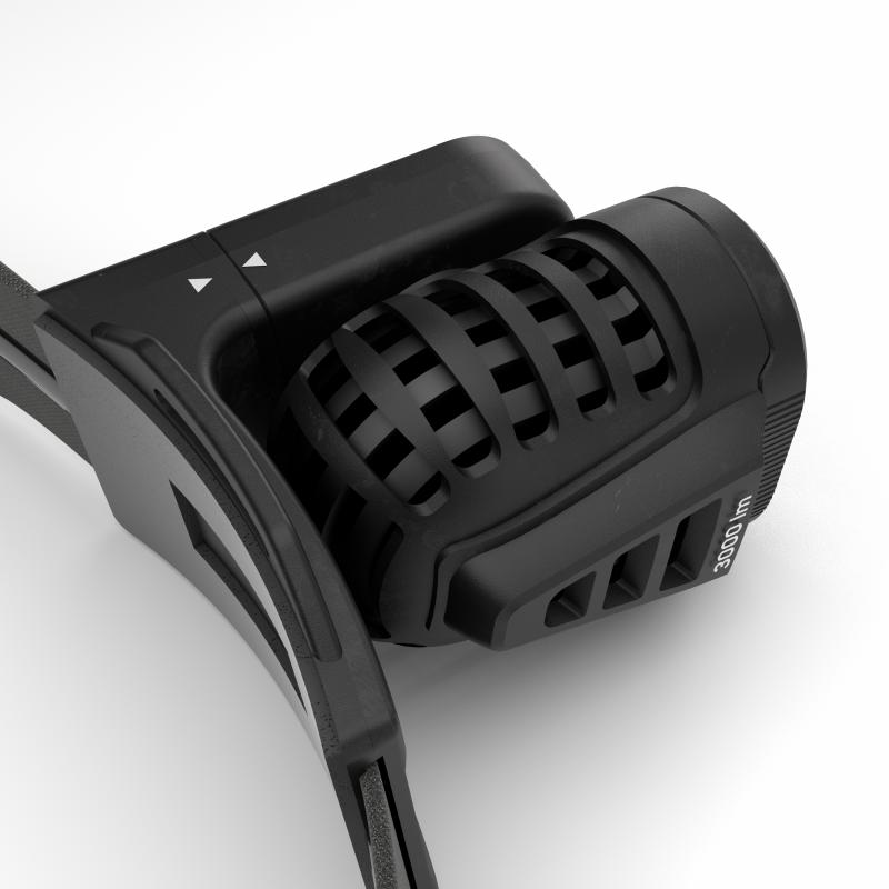 Kraftig hodelykt med stort batteri. Følger med forlengerkabel slik at batteriet kan ligge i jakkelomma.