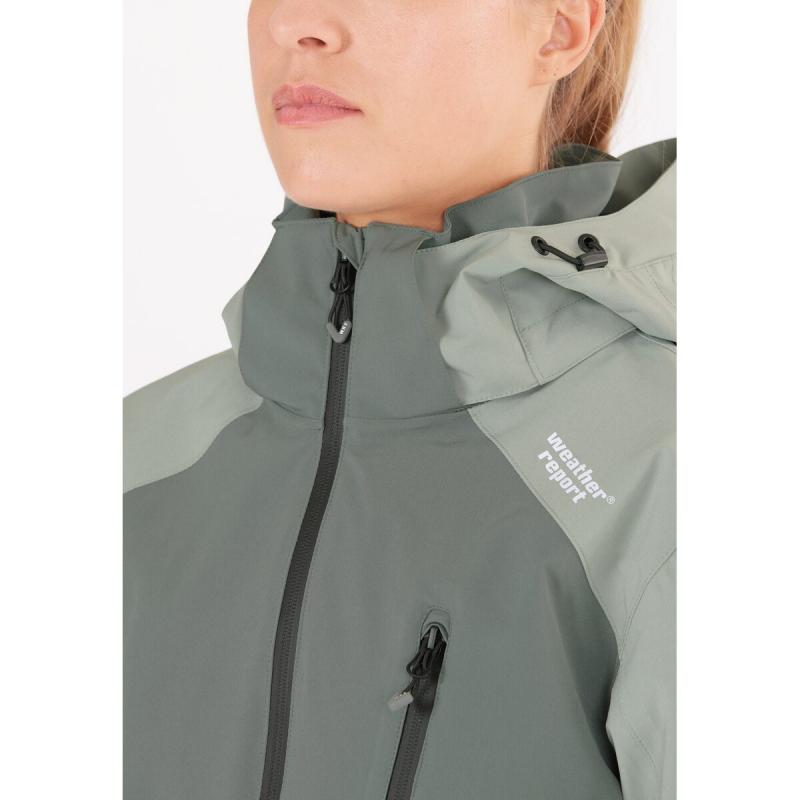 Med CAMELIA RAIN JACKET W-PRO15000 funksjonsjakke for damer fra WEATHER REPORT i Danmark kan du nyte utendørsaktiviteter i all slags vær. Det sporty skandinaviske designet gir et moderne og trendy uttrykk. Den pustende, vanntette og vindtette jakken med PU-belegg lar deg stå imot regn og vind takket være en vannsøyle på 15 000 mm. PU-belegget er miljøvennlig og PFC-fritt. Sveisede sømmer gjør jakken 100 % vind- og vanntett. Det funksjonelle stretchmaterialet av polyester og elastan gir god bevegelsesfrihet i alle bevegelser. Andre detaljer inkluderer høy krage, justerbar hette med visir, glidelåslommer i siden og på brystet, YKK-glidelås, borrelåsstramming ved ermene og reflekterende logotrykk. Alt dette gjør CAMELIA RAIN JACKET W-PRO15000 til en pålitelig jakke for utendørsaktiviteter – og den gir utmerket verdi for pengene.