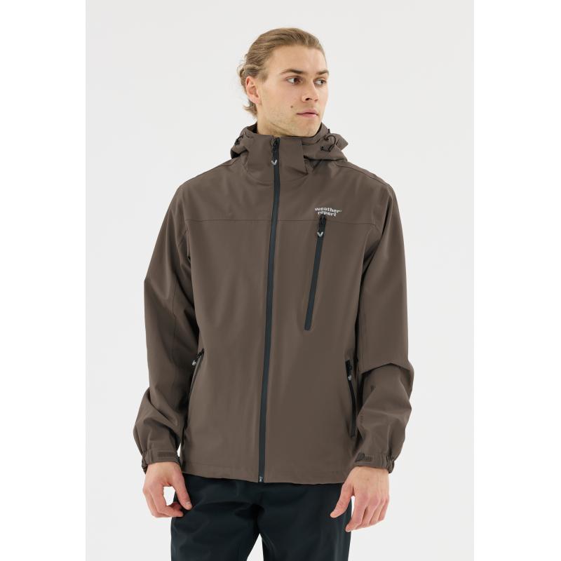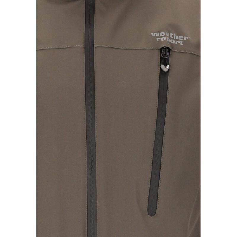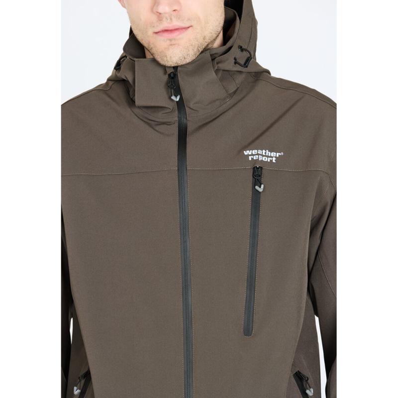 Funksjonsjakken «Delton» for herre fra Weather Report er utviklet for å takle skiftende værforhold under utendørsaktiviteter. Den skandinavisk-inspirerte, sporty designen gir et moderne uttrykk. Jakken er pustende, vind- og vanntett med PU-belegg og har en vannsøyle på 15 000 mm. Teipede sømmer gir full værbeskyttelse. Det elastiske materialet i polyester og elastan gir god bevegelsesfrihet. Modellen har høy krage, justerbar hette med brem, praktiske sidelommer og brystlomme med glidelås, slitesterk YKK-glidelås, justering med borrelås på mansjettene og reflekslogo.